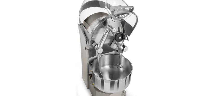 TVÅARMAD DEGBLANDARE IBT-serien med blandare som har nedsänkbara armar är resultatet av kontinuerlig forskning kring den bästa tillgängliga tekniken, både när det gäller material och komponenter. Den är tillverkad av gjutjärn, vilket ger en stabilare konstruktion än de klassiska svetsade stålkonstruktionerna, där starka vridkrafter kan orsaka sprickor i svetsarna och leda till oljefläckage. Alla mekaniska delar och kugghjul arbetar i ett oljebad, vilket garanterar mycket tyst drift och lång livslängd. IBT-seriens blandare lämpar sig särskilt väl för deg med hög vattenhalt, såsom deg för franskt bröd, rostbröd och surdeg, men även deg till croissanter, panettone och brioche. Säkerhet och hygien: Blandarna i IBT-serien är utrustade med PED-skydd mot olyckor. Dessa skydd har mycket hög mekanisk hållfasthet och skyddar även operatören mot oavsiktlig inandning av mjöldamm, en risk som kan uppstå under blandningen. Skydden uppfyller alla gällande hälso- och hygienföreskrifter för förebyggande arbete. Bunken är tillverkad av tjockt rostfritt stål och har en förstärkt botten för att tåla de mekaniska påfrestningar som uppstår under blandning. Blandningsarmar och verktyg Armarna i IBT-serien är tillverkade av gjuten aluminium, medan blandningsverktygen är tillverkade av rostfritt stål 316L. Verktygen kan höjdjusteras med ett handhjul, vilket är en viktig funktion vid blandning av vissa produkter – till exempel panettone. En annan mycket praktisk funktion är att varje gång maskinen stängs av, ser en mekanisk anordning till att armarna alltid stannar i övre position, vilket gör det lättare för operatören att tömma bunken.